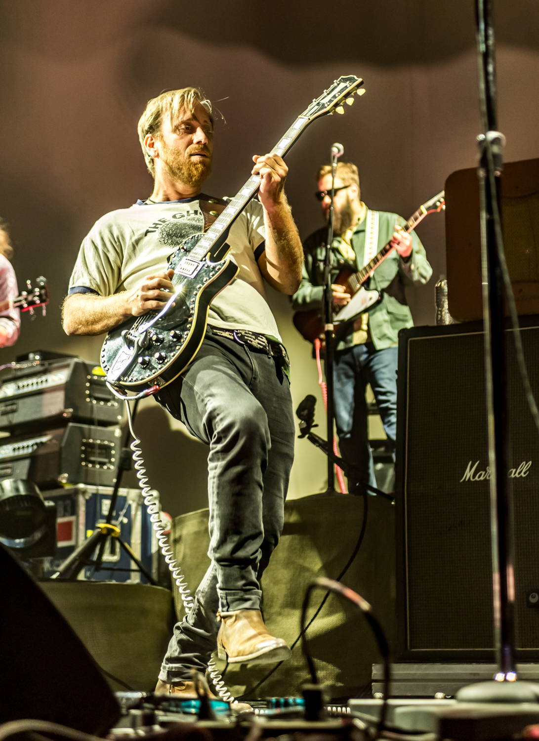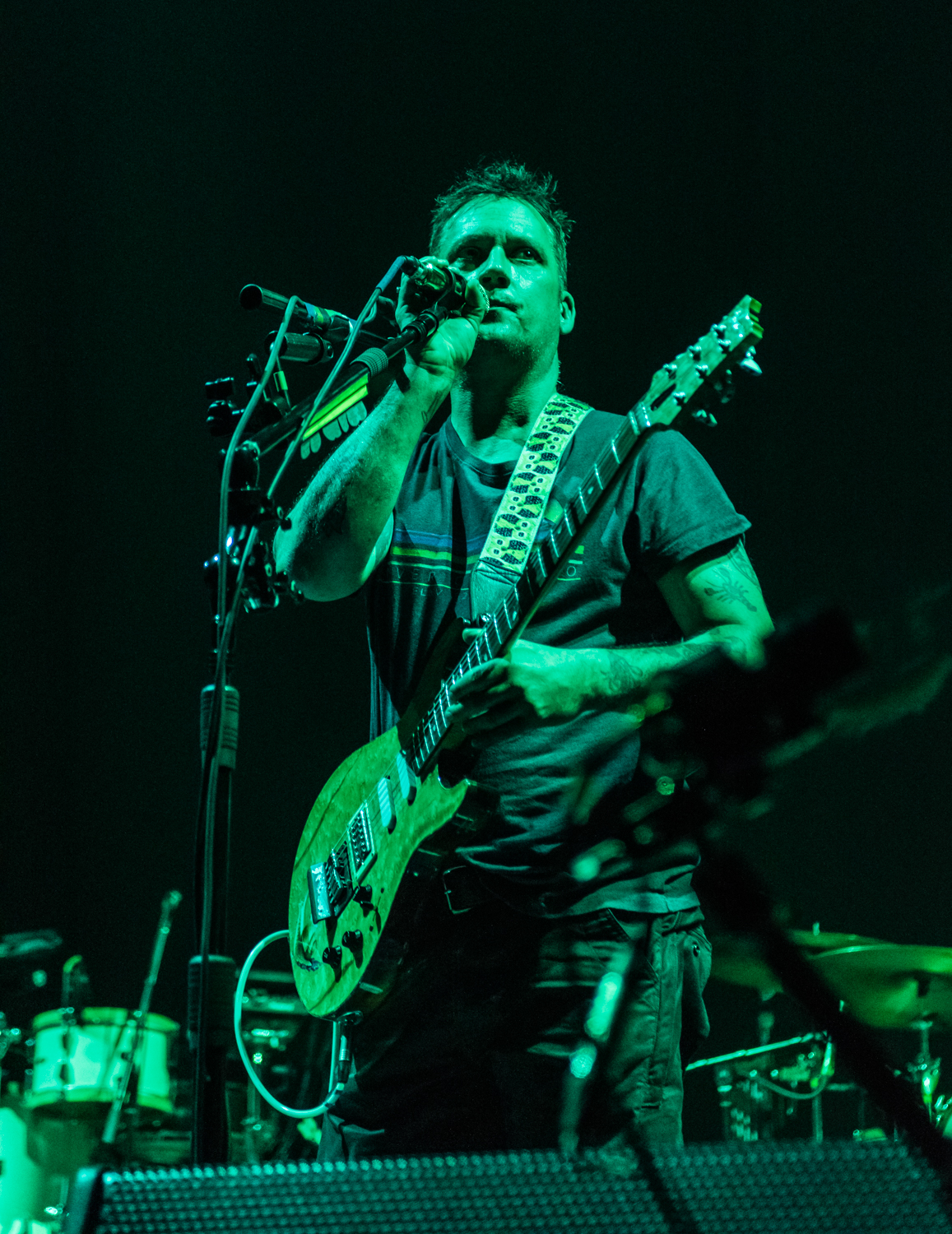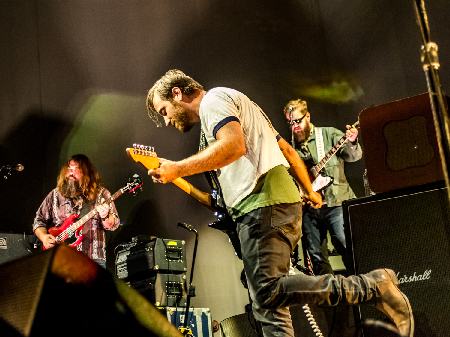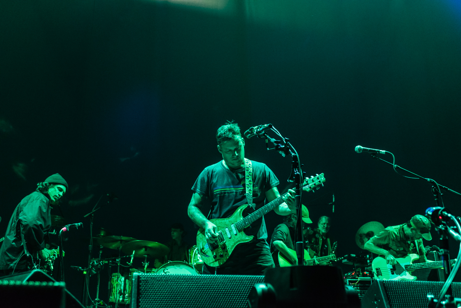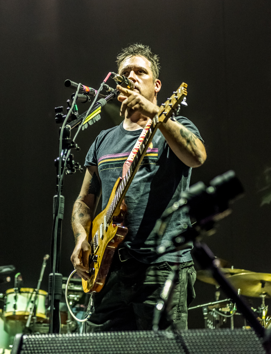 Next to play were indie rockers Modest Mouse. As the eight piece menagerie took the stage, the sounds of buzzing bugs filled the arena. Frontman Isaac Brock was surrounded by a wall of monitors, which seemed to corral him like a caged animal. Modest Mouse fans were treated to a twelve song set that included numerous staples from the band’s career, including “The World at Large”, “Dashboard” and “Bukowski”, which ended in a barbaric yawp. The band’s set vacillated between folksy moments and raucous rock n roll — including a bit of rabid guitar playing by Brock with his face on “Styrofoam Boots/It’s All Nice on Ice, Alright”.