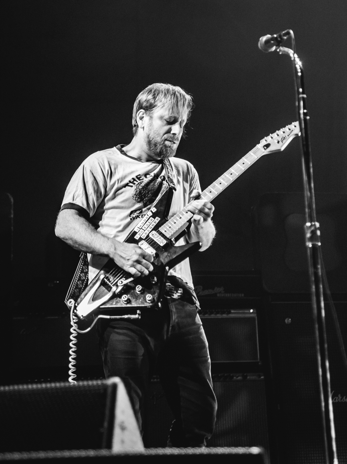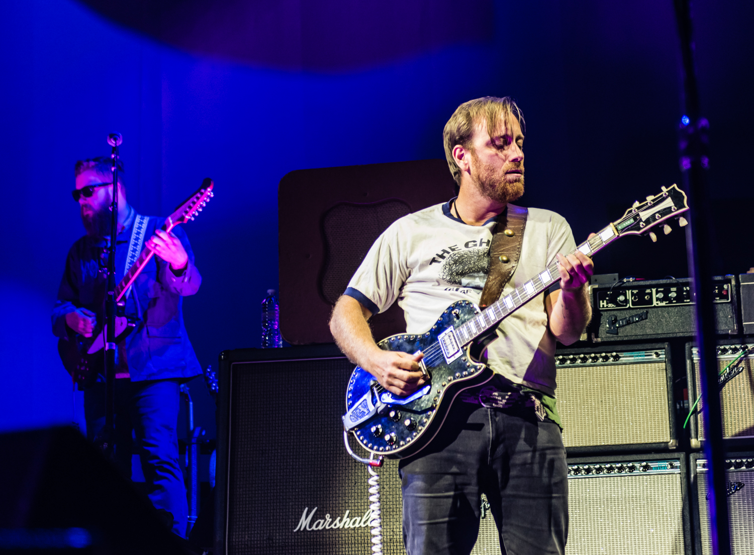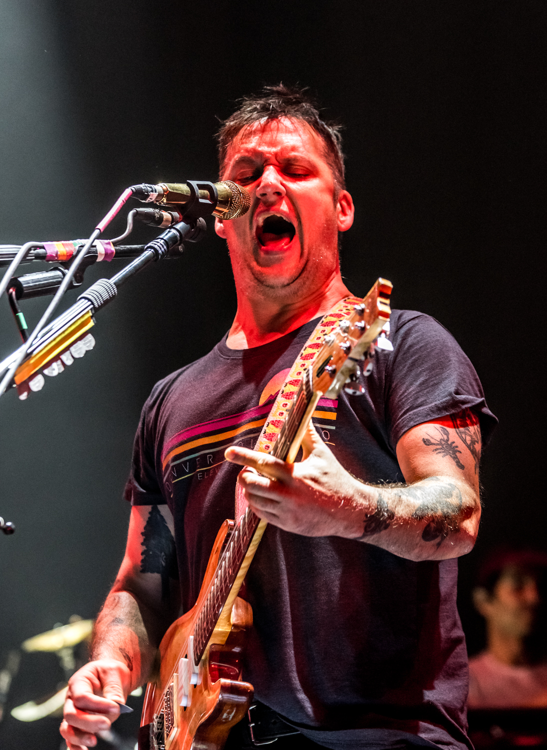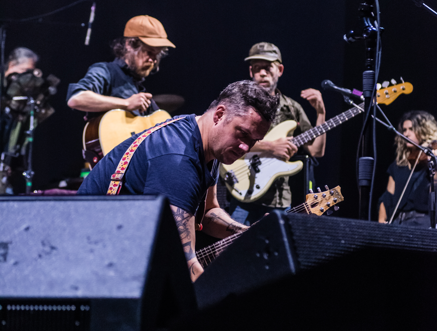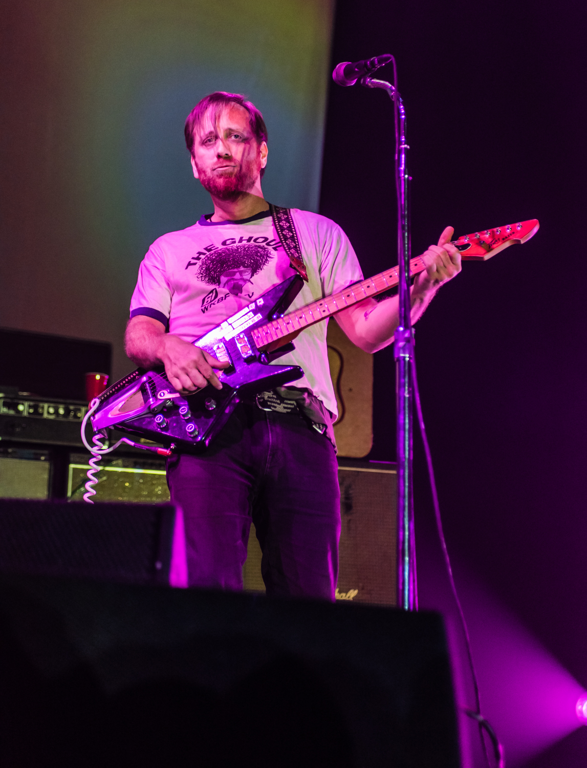 Next to play were indie rockers Modest Mouse. As the eight piece menagerie took the stage, the sounds of buzzing bugs filled the arena. Frontman Isaac Brock was surrounded by a wall of monitors, which seemed to corral him like a caged animal. Modest Mouse fans were treated to a twelve song set that included numerous staples from the band’s career, including “The World at Large”, “Dashboard” and “Bukowski”, which ended in a barbaric yawp. The band’s set vacillated between folksy moments and raucous rock n roll — including a bit of rabid guitar playing by Brock with his face on “Styrofoam Boots/It’s All Nice on Ice, Alright”.