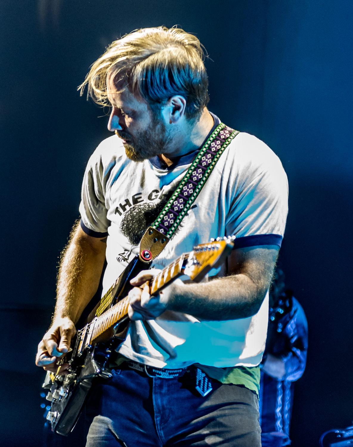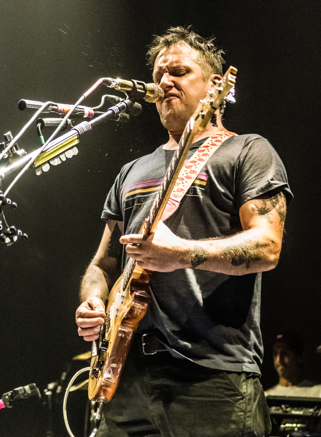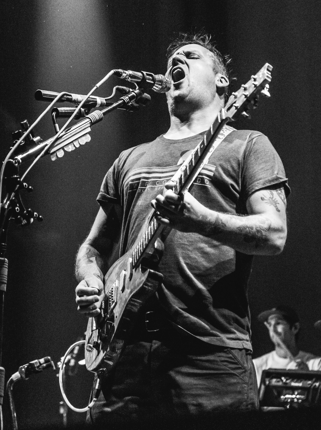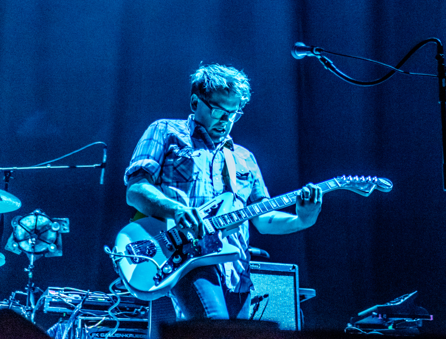 Next to play were indie rockers Modest Mouse. As the eight piece menagerie took the stage, the sounds of buzzing bugs filled the arena. Frontman Isaac Brock was surrounded by a wall of monitors, which seemed to corral him like a caged animal. Modest Mouse fans were treated to a twelve song set that included numerous staples from the band’s career, including “The World at Large”, “Dashboard” and “Bukowski”, which ended in a barbaric yawp. The band’s set vacillated between folksy moments and raucous rock n roll — including a bit of rabid guitar playing by Brock with his face on “Styrofoam Boots/It’s All Nice on Ice, Alright”.