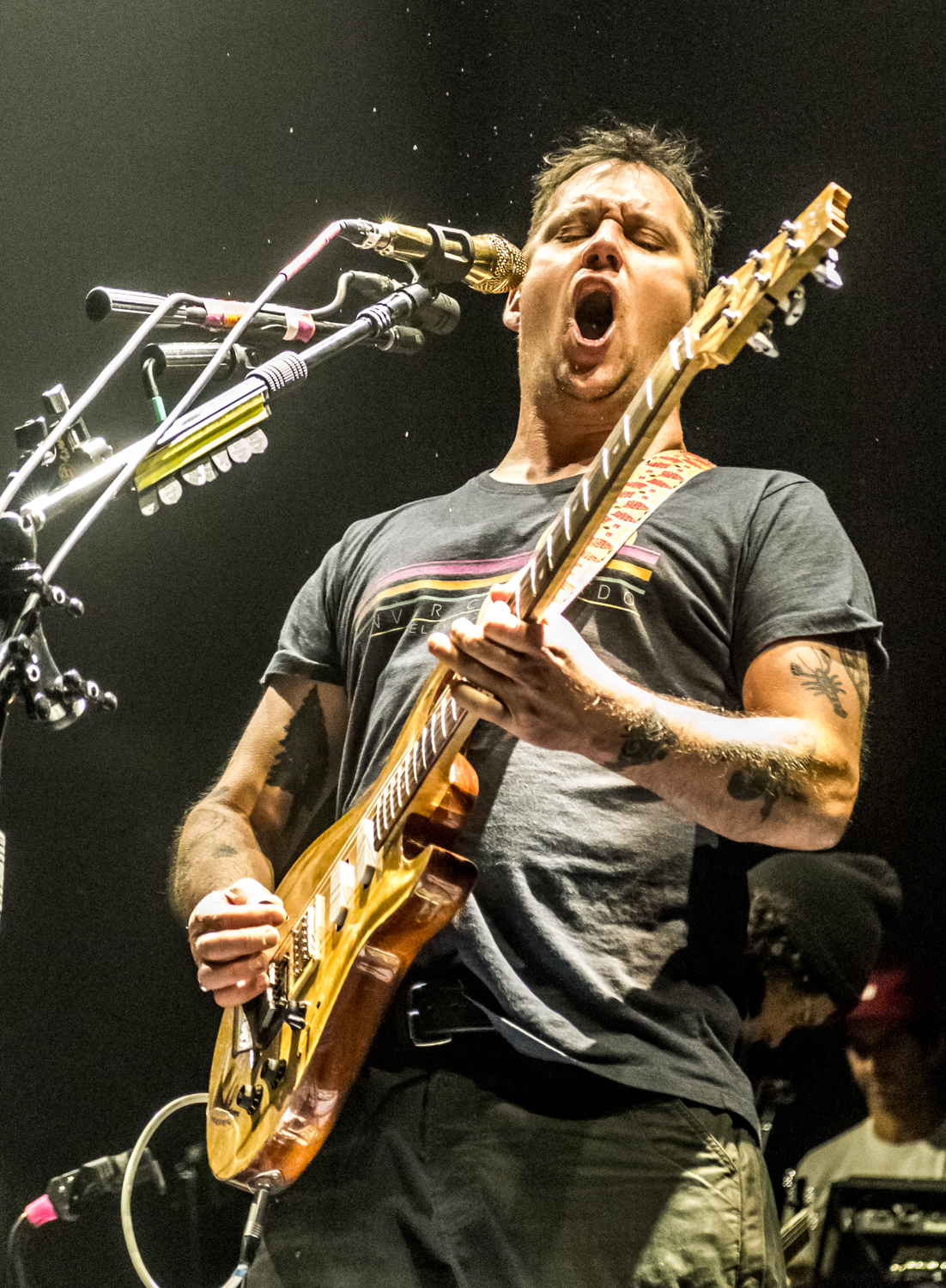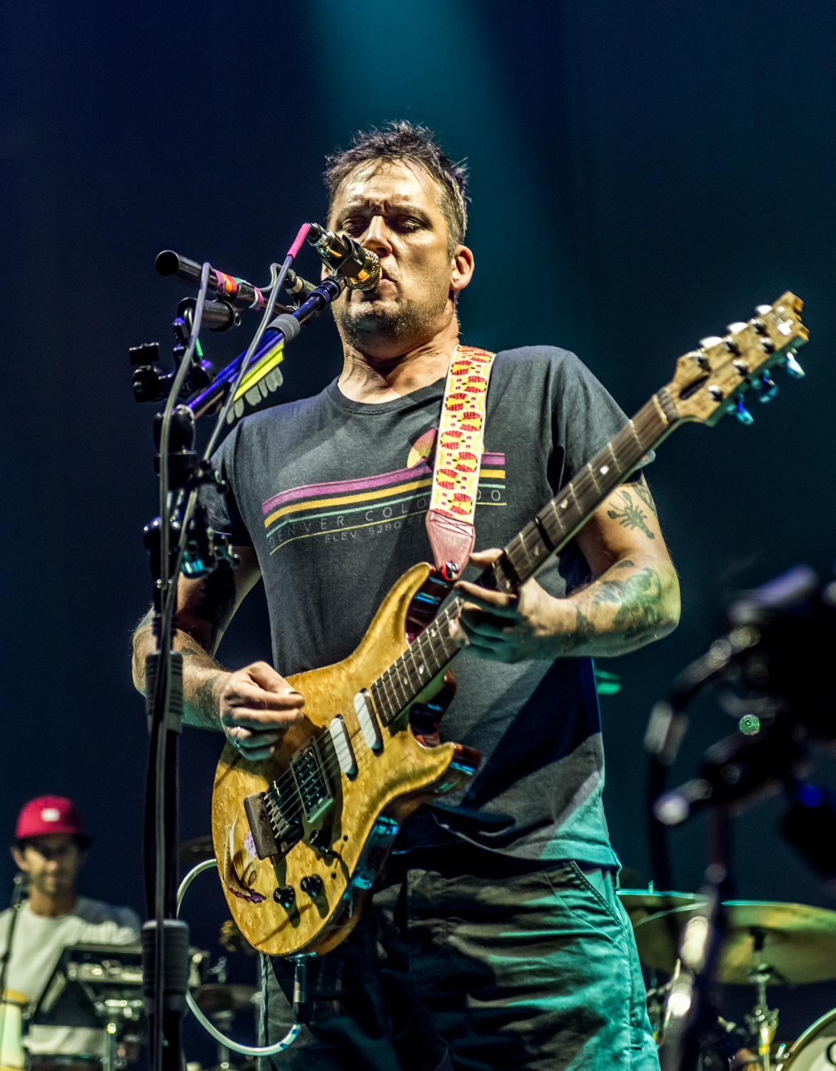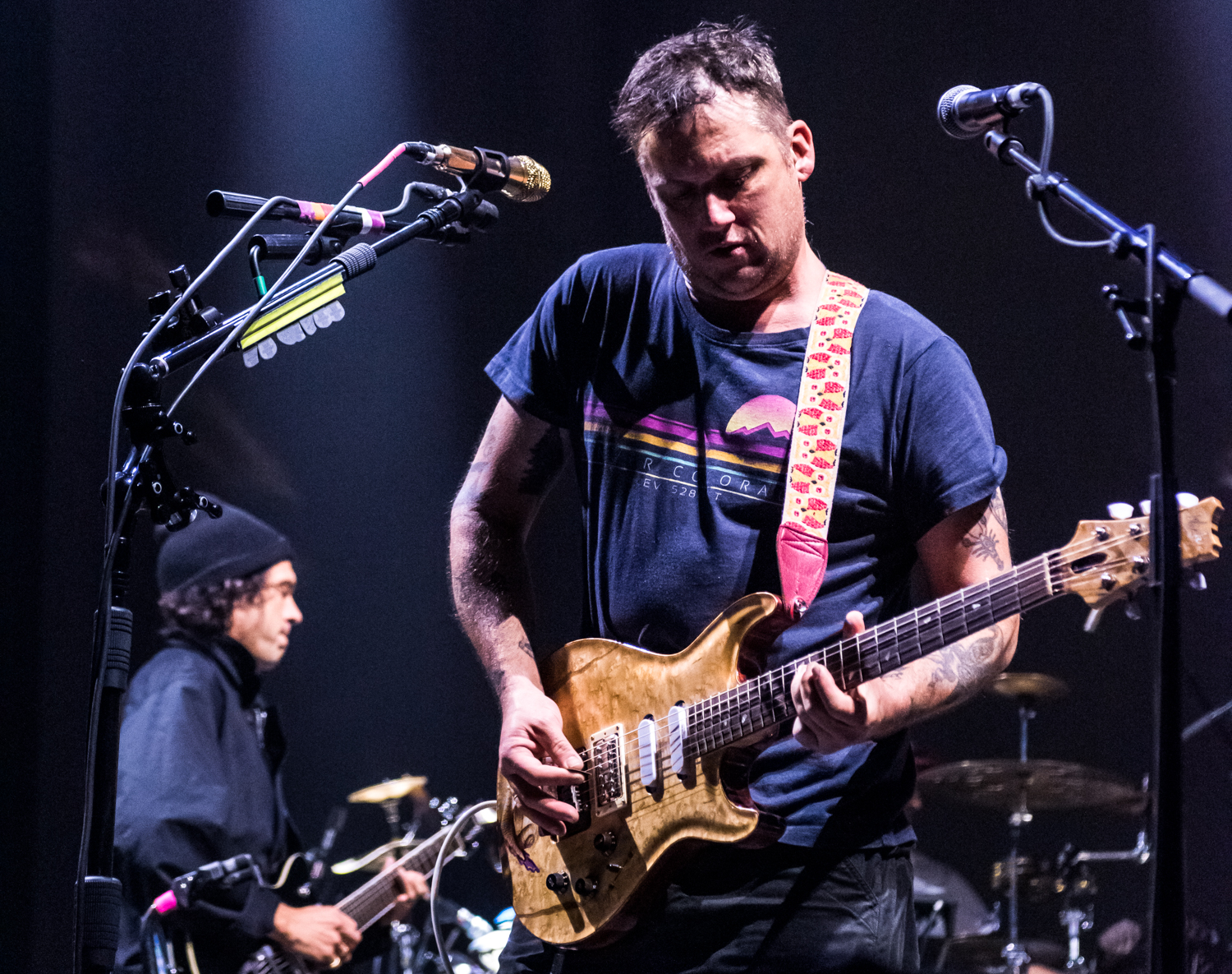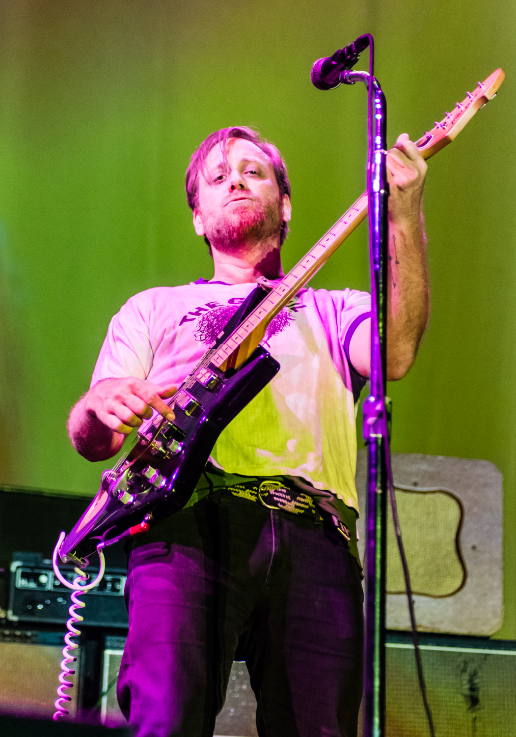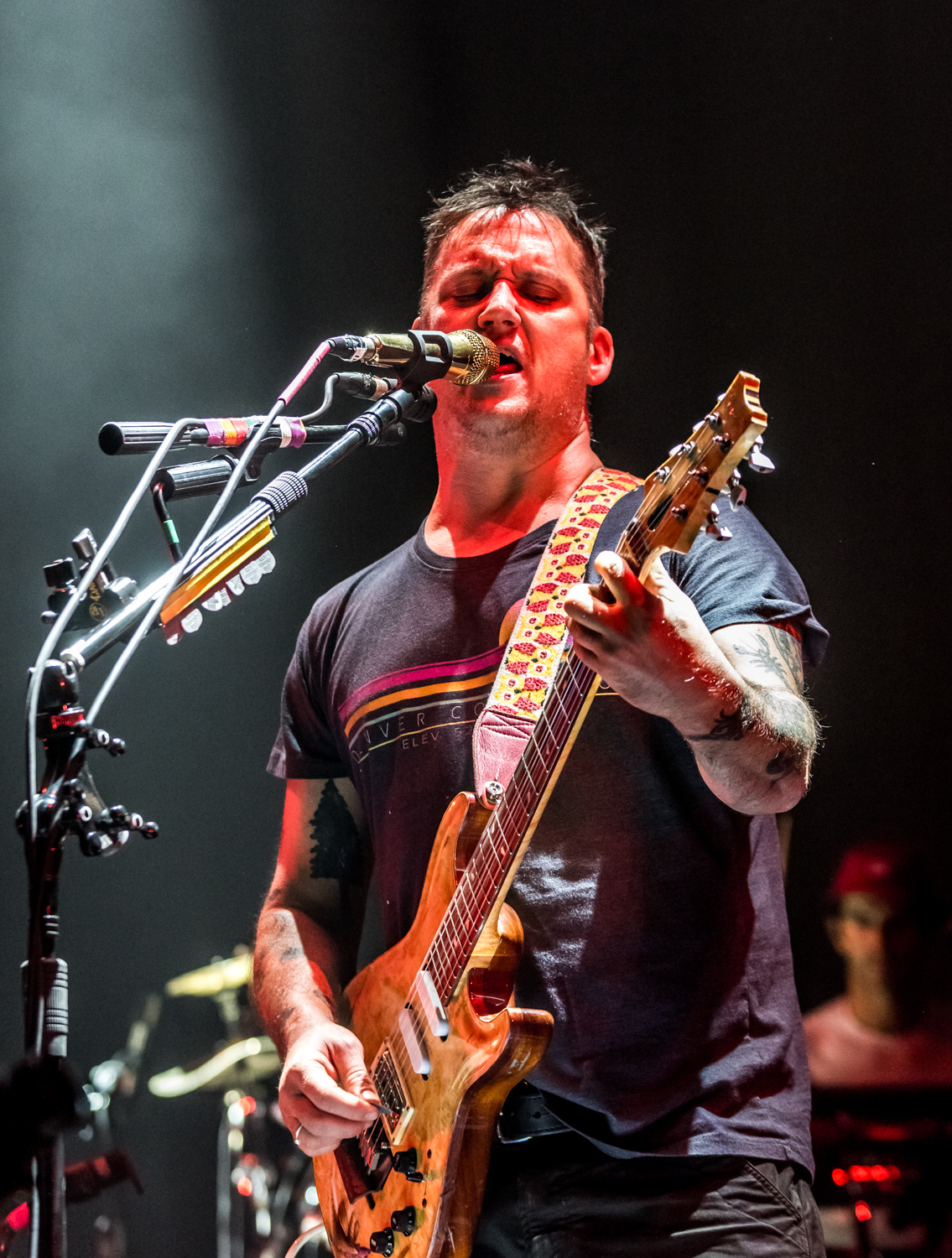 Next to play were indie rockers Modest Mouse. As the eight piece menagerie took the stage, the sounds of buzzing bugs filled the arena. Frontman Isaac Brock was surrounded by a wall of monitors, which seemed to corral him like a caged animal. Modest Mouse fans were treated to a twelve song set that included numerous staples from the band’s career, including “The World at Large”, “Dashboard” and “Bukowski”, which ended in a barbaric yawp. The band’s set vacillated between folksy moments and raucous rock n roll — including a bit of rabid guitar playing by Brock with his face on “Styrofoam Boots/It’s All Nice on Ice, Alright”.