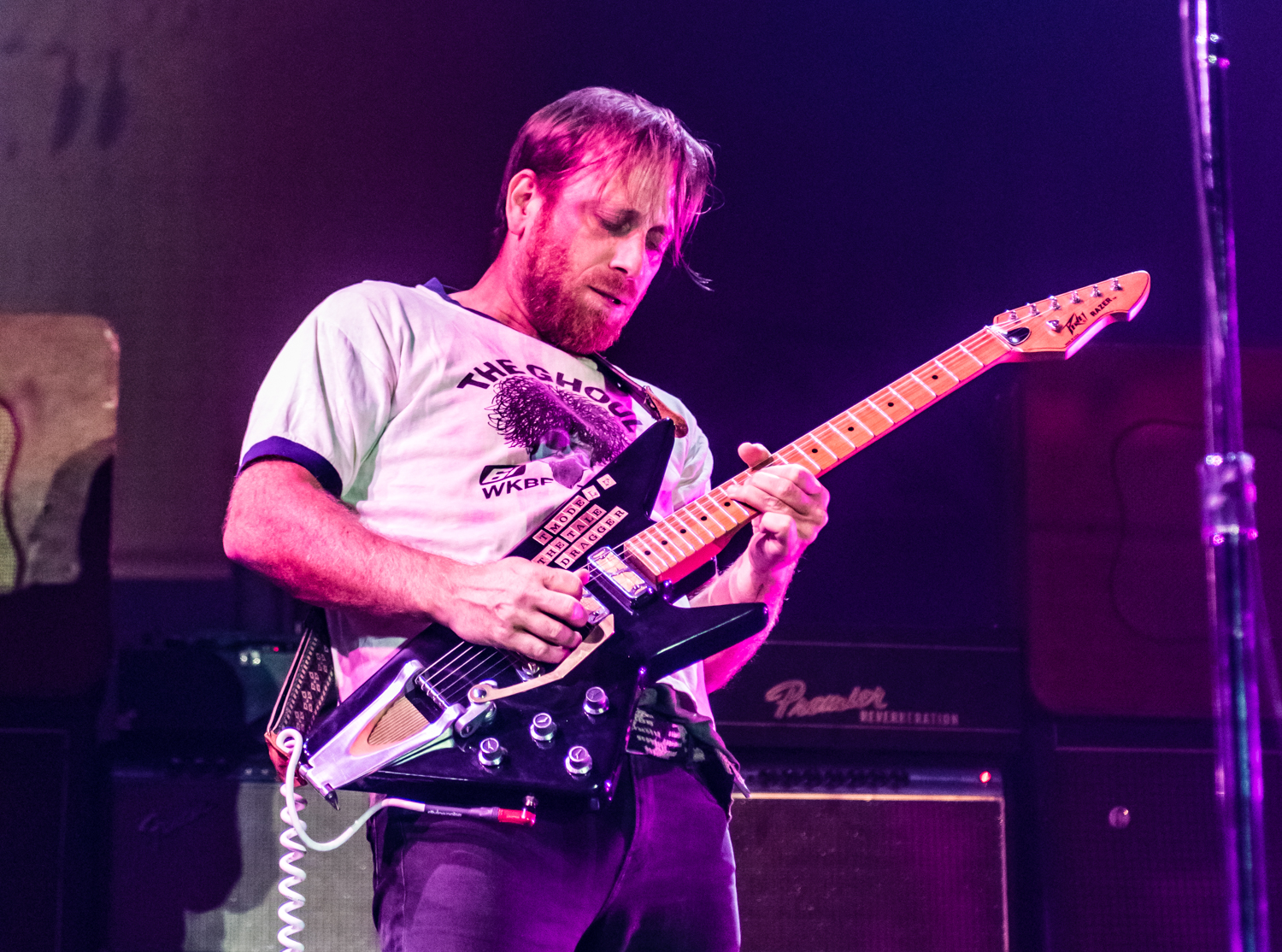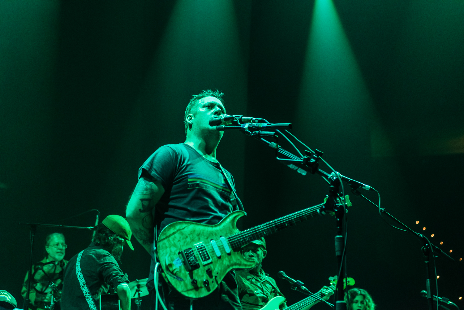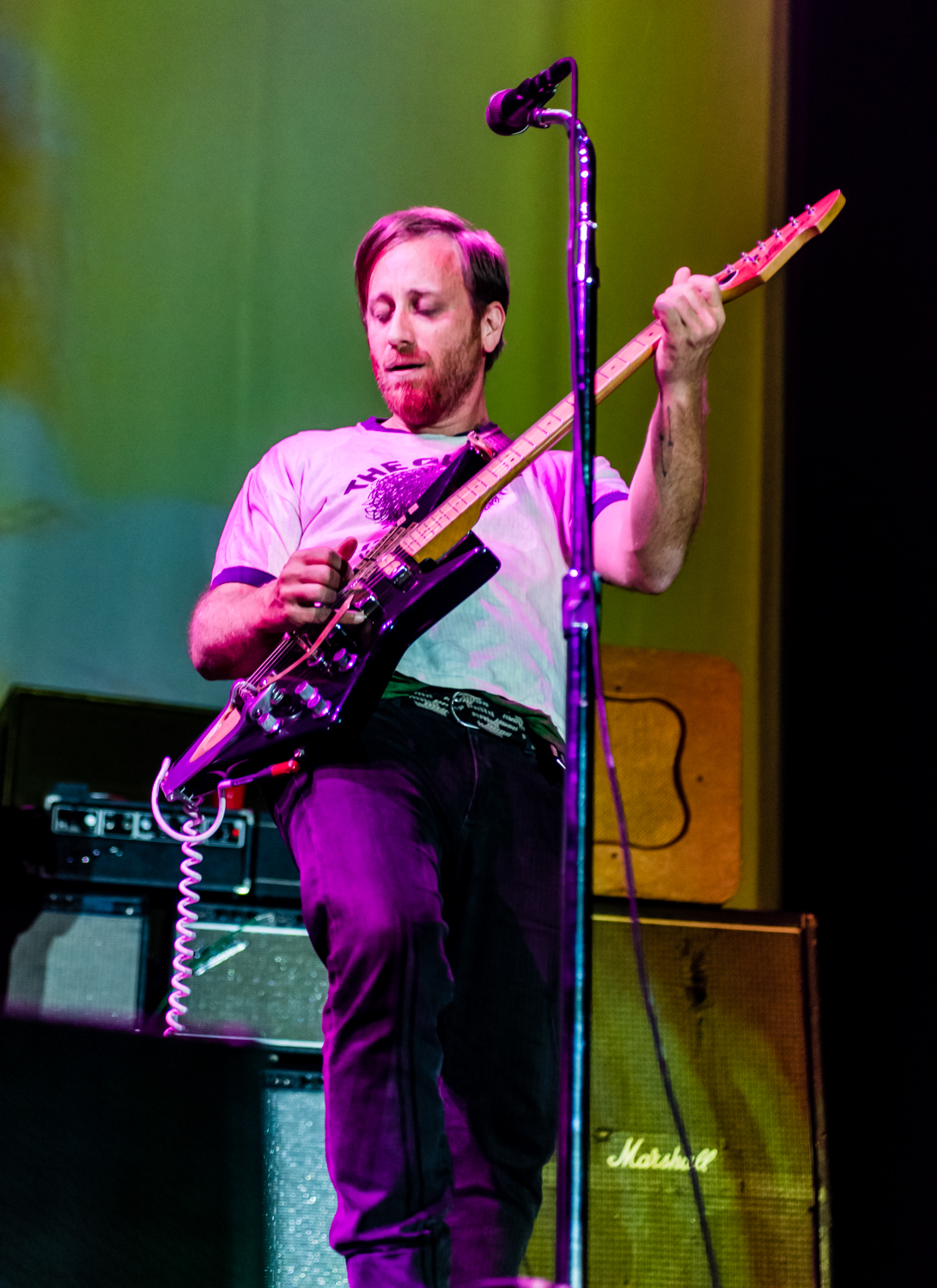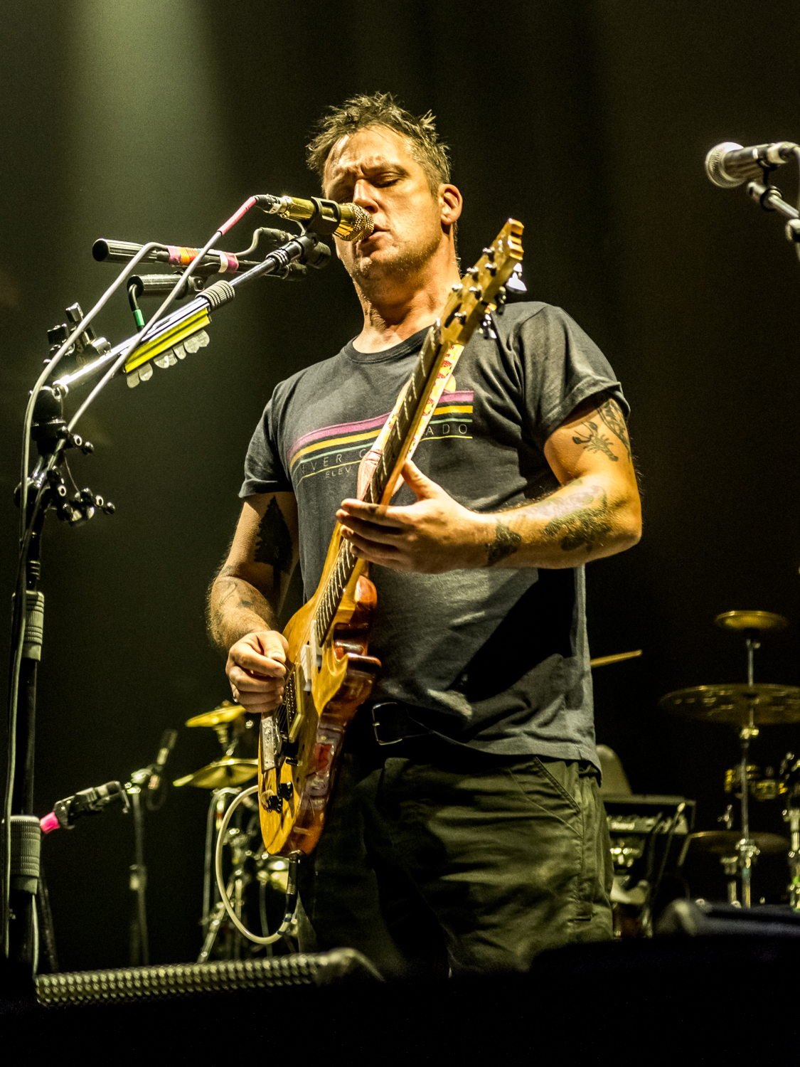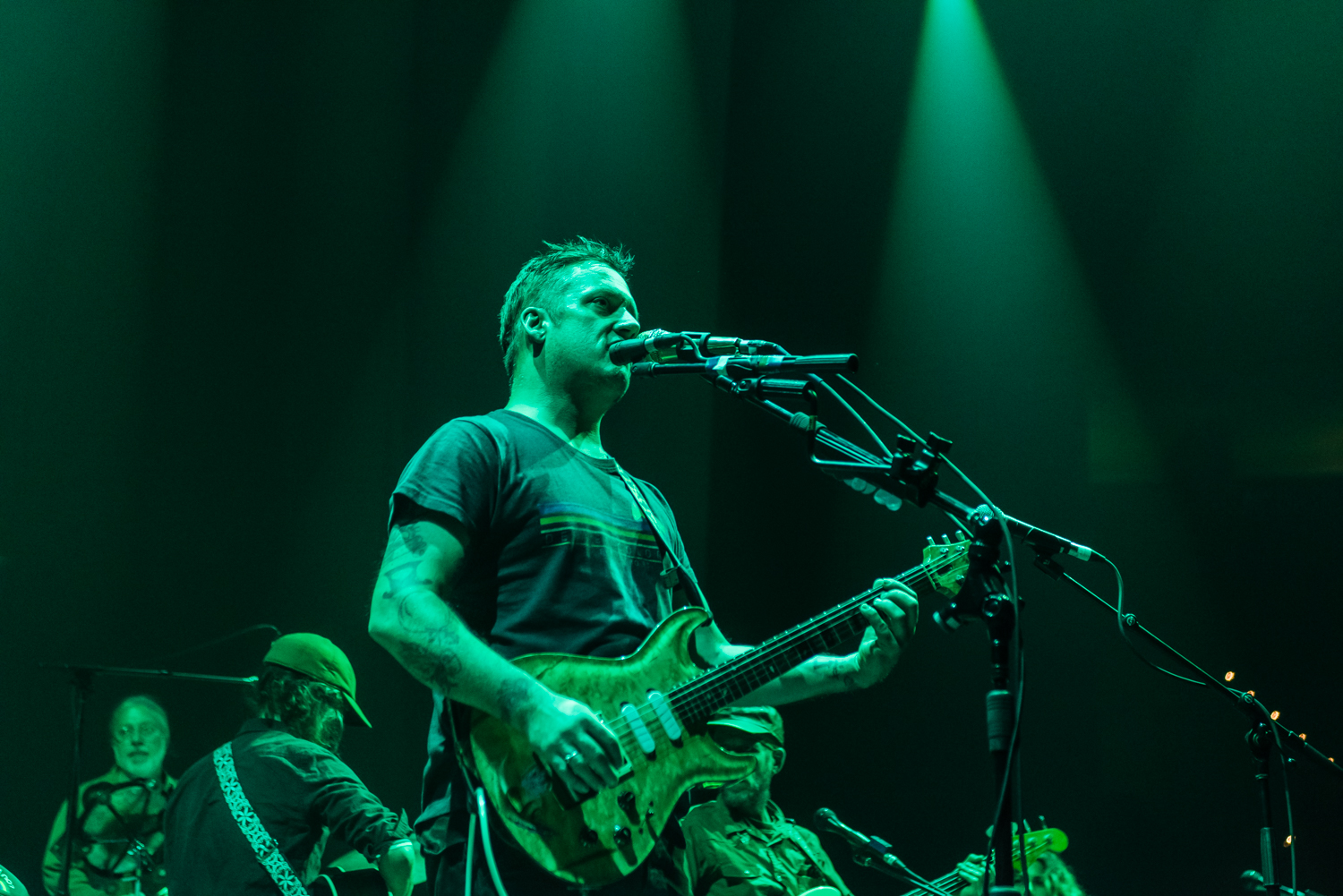 Next to play were indie rockers Modest Mouse. As the eight piece menagerie took the stage, the sounds of buzzing bugs filled the arena. Frontman Isaac Brock was surrounded by a wall of monitors, which seemed to corral him like a caged animal. Modest Mouse fans were treated to a twelve song set that included numerous staples from the band’s career, including “The World at Large”, “Dashboard” and “Bukowski”, which ended in a barbaric yawp. The band’s set vacillated between folksy moments and raucous rock n roll — including a bit of rabid guitar playing by Brock with his face on “Styrofoam Boots/It’s All Nice on Ice, Alright”.