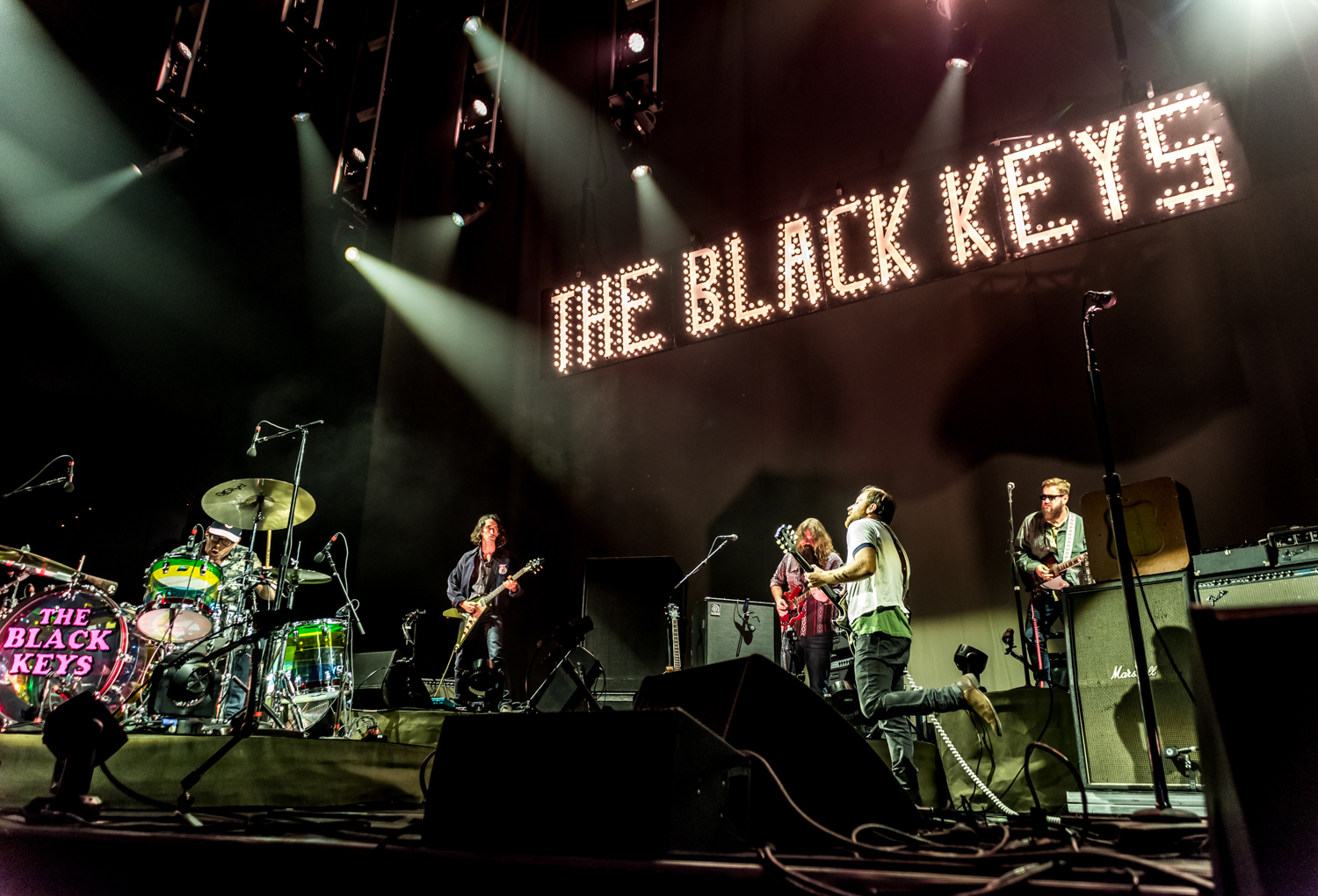 When The Black Keys took the stage, the crowd of nearly 20,000 people rose from their seats and got rowdy. The Ohio natives were decked out in their best Cleveland garb — Auerbach in a Ghoul shirt and Carney in an Indians hat. Their twenty one song set kicked off with “I Got Mine” and never let up. Auerbach made the audience go wild with his guit solos and silky voice, while Carney murdered his drum kit. Hits like “Gold on the Ceiling” and “Howlin’ for You” became huge singalongs as the crowd reciprocated the band’s bombastic energy. And while the audience verifiably lost their shit over the old material, they were equally enthused with the tunes the boys offered from their most recent album, Let’s Rock. “Tell Me Lies” oozed laid back, old school swagger that could have slipped right out of the sixties. “Fire Walk With Me” inspired plenty of dancing. The band’s encore began with hit “Lo/Hi” and ended with “She’s Long Gone”, which again proved how the pair’s songwriting will live on as a timeless offering to rock n roll.